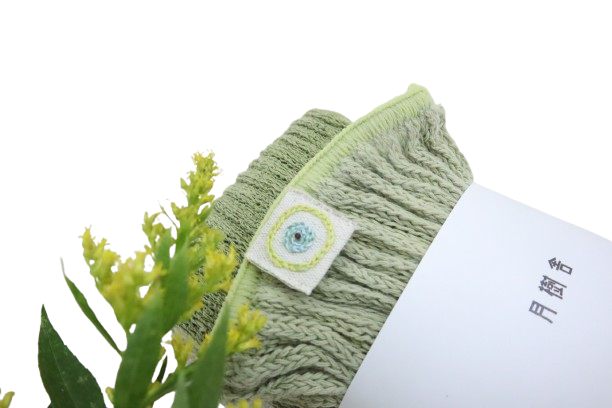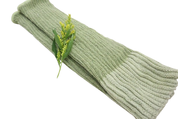 草木染めレッグウォーマー ソリダゴ 黄緑 満月染 コットン&シルク